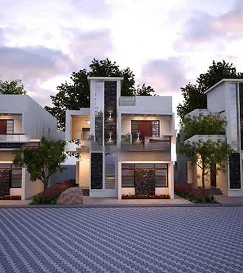 The spacious layouts emphasize natural ventilation, ample lighting, and easy movement across living, dining, and bedroom spaces. Kitchens are designed for daily convenience, and bathrooms come with contemporary fittings that add comfort and elegance. The exteriors of the houses are styled with a simple yet attractive façade that gives each home a welcoming and polished appearance.